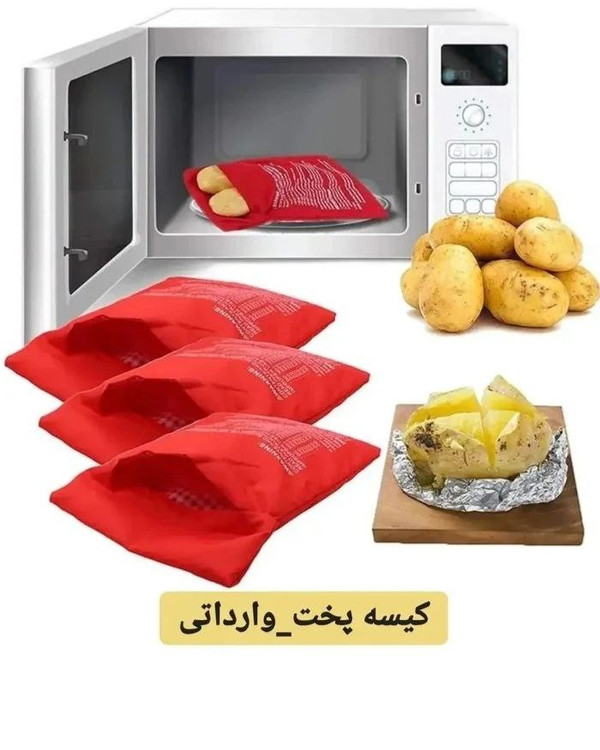 با کیسه پخت سیب زمینی کافی است ابتدا یک الی چهار عدد سیب زمینی را شسته و داخل کیسه پخت سیب زمینی قرار داده و کیسه را به مدت ۴ دقیقه در ماکروویو و در حالت ماکرو قرار دهید. در این زمان سیب زمینی های شما به خوبی به شکل تنوری پخته خواهند شد. در صورتی که تمایل به تنوری تر شدن سیب زمینی ها دارید می توانید ۳ دقیقه دیگر آن را در مایکروویو قرار دهید☺️❤️
