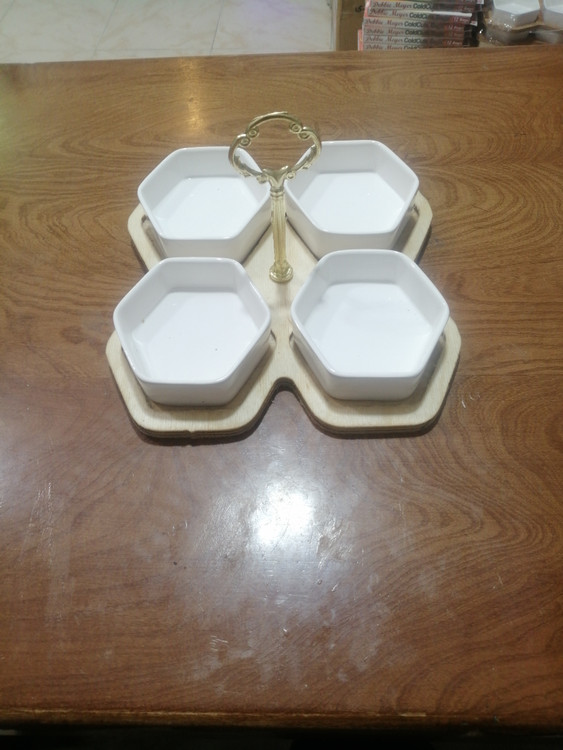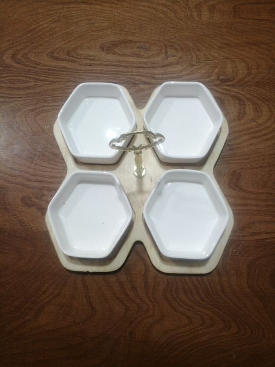 اردوخوری 4 خانه شش ظلعی دسته دار سرامیکی زیر چوب